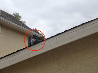 He climbs in bed with me and I ask him if he knows what the sound is. I proceed to tell him the sounds he hears are birds walking around on the roof hitting the roof with their beaks. When we moved into our house, there was a fake owl tied to our roof. Supposedly it keeps birds away. Not too sure it's all that effective, but we keep it up to have an occasional laugh.